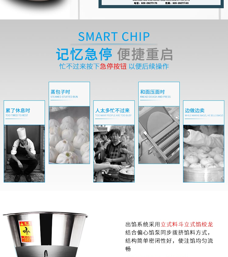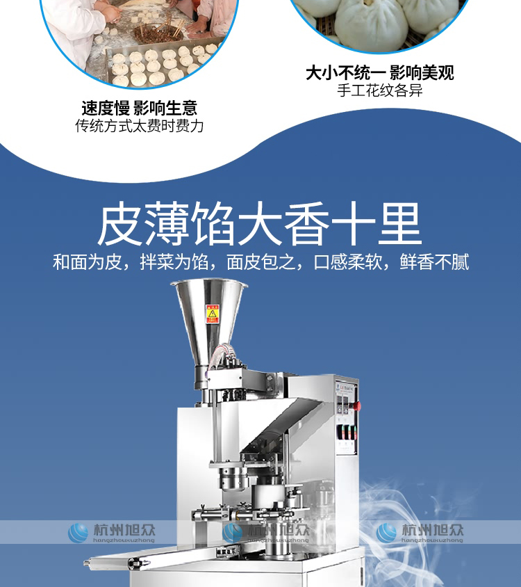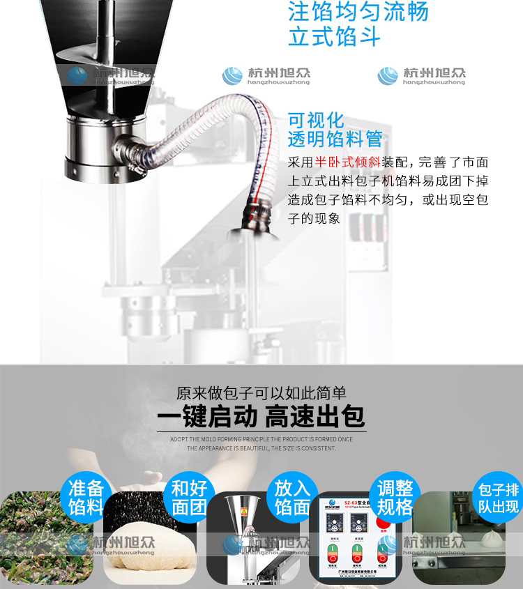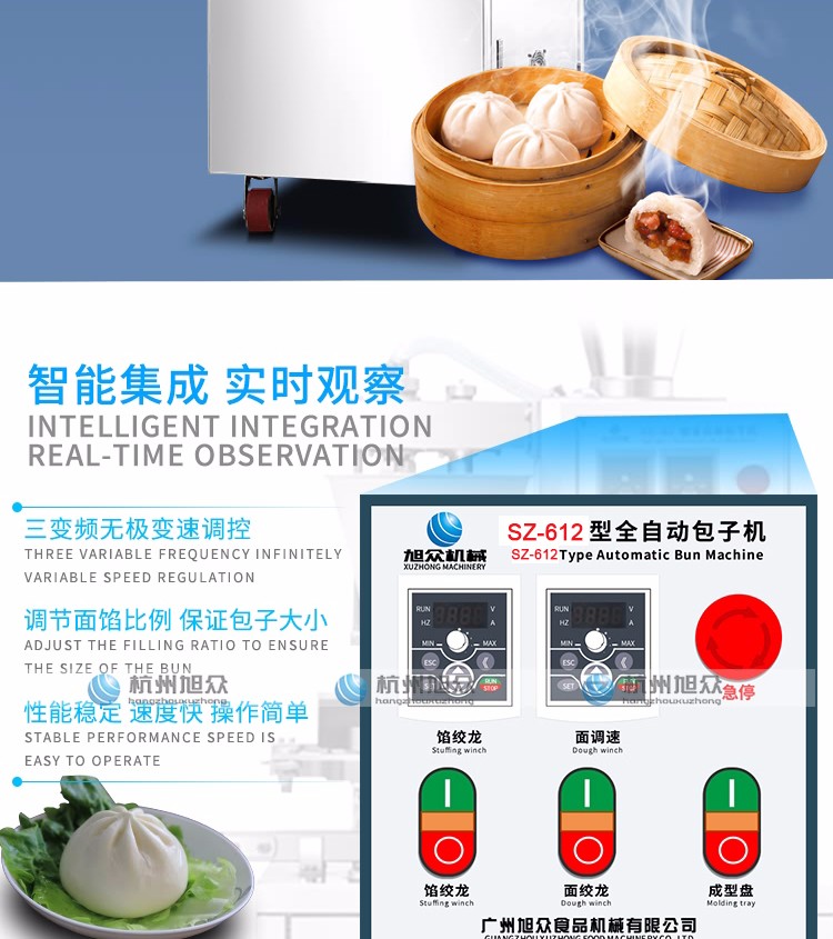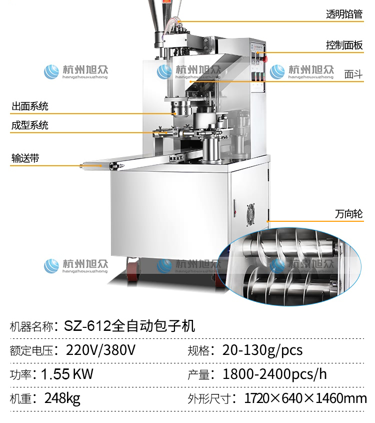 SZ-612型全自動包子機是一款設計先進,結構簡單,操作方便,生產性能穩(wěn)定的設備。其體積小重量輕,外殼主要部件采用不銹鋼制作,外觀精美。