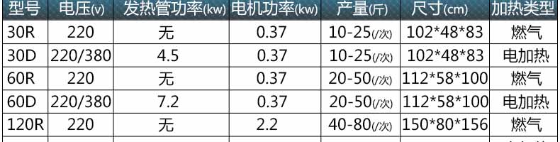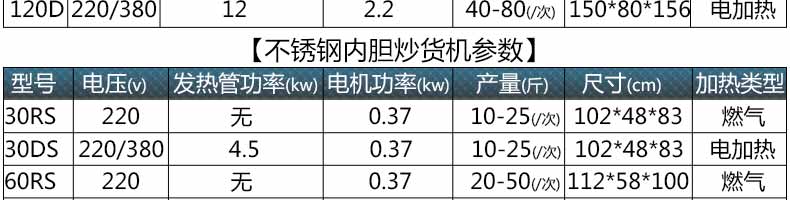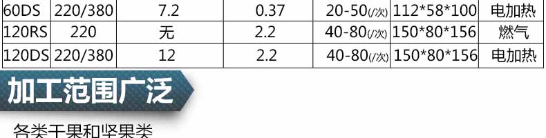1.炒貨機有30型.60型.120型三種,每個型號各有燃氣加熱和電加熱兩種方式。