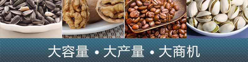 7.適合加工各種干果和堅果類,如;板栗、花生、瓜子、松籽、榛子、杏仁、菜籽、咖啡豆、紅棗、芝麻、、核桃、各種豆類、麥類、米類等。適用于在各大商場、超市、食品專賣店、連鎖店、街道小吃等人口密集區(qū)等處定點經(jīng)營和加工。是您創(chuàng)業(yè)致富的好幫手。