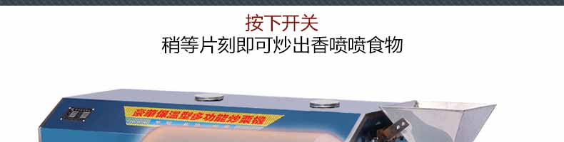 8.炒貨機結(jié)構(gòu)合理,操作簡單,熱效率高,所炒制食物非常均勻、口感良好!