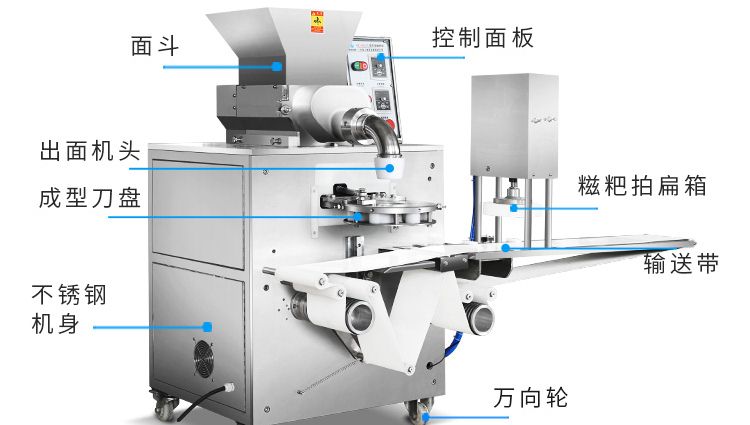 ?增設(shè)氣缸打餅功能和氣缸切刀功能,打餅薄又準確,可做長條形產(chǎn)品;