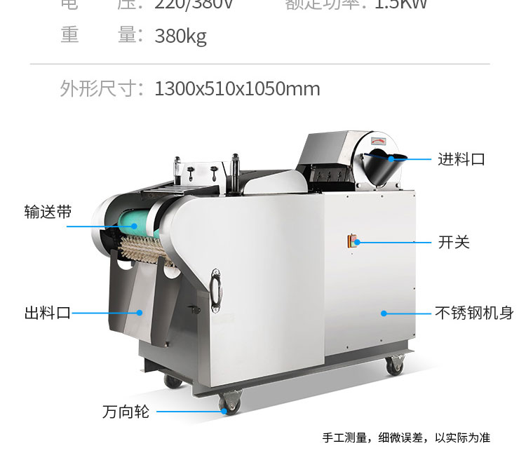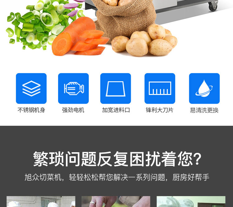 旭眾多功能切菜機(jī)是根據(jù)多種進(jìn)口機(jī)在實(shí)地使用中存在不足之處,反復(fù)改進(jìn)設(shè)計(jì)制造,采用不銹鋼和全滾動軸承結(jié)構(gòu),具有外形美觀,成熟可靠,使用維修方便等特點(diǎn)。適用蔬菜脫水、速凍、保鮮、腌漬等食品行業(yè)各類蔬菜??汕惺卟耍?br/>