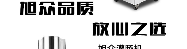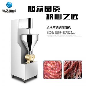 旭眾牌SZ-200灌腸機(jī)使用敞開(kāi)式不銹鋼料斗,適用于連續(xù)添加物料;與灌裝手接觸部件全部采用優(yōu)質(zhì)不銹鋼制作以防生銹;該機(jī)自動(dòng)化程度高,技術(shù)先進(jìn)、性能穩(wěn)定、操作簡(jiǎn)便、工作效率高,具有不破壞物料成份,保質(zhì)、保鮮等特點(diǎn)。