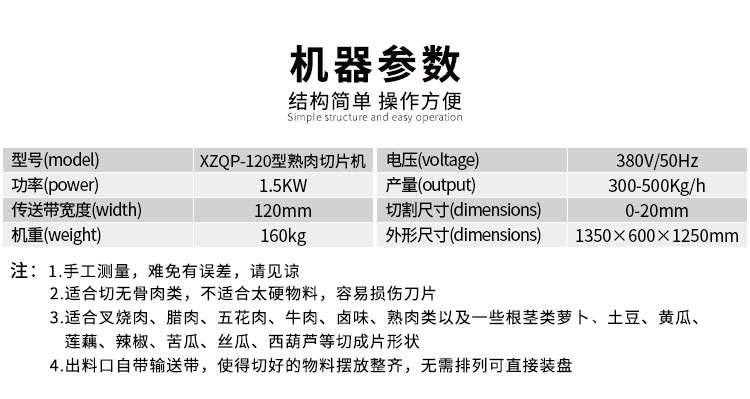 l 特制法國進(jìn)口刀片,鋒利持久,二把刀片切割原理,能將叉燒肉、臘肉、五花肉、牛肉、鹵味、熟肉類以及一些根莖類蘿卜,土豆,黃瓜,蓮藕,辣椒,苦瓜,絲瓜,西葫蘆等切成片形狀;