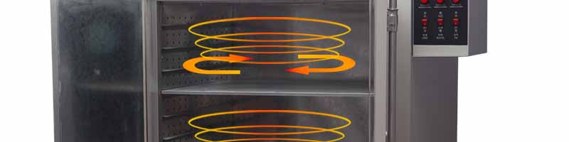 本運(yùn)風(fēng)箱分水平對(duì)流式和上下對(duì)流式兩種。工作室較小的采用水平對(duì)流式,發(fā)熱部分在上部,工作室較大的則采用上下對(duì)流式,發(fā)熱部分在上部。電機(jī)安裝在上部或后部,通過(guò)帶動(dòng)風(fēng)輪將熱量流通到工作室,如此循環(huán)。