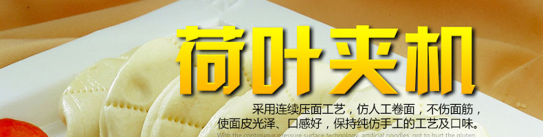 “荷葉夾”顧名思義便是其形狀似荷葉,蒸制后的成品小巧可愛(ài),擺滿(mǎn)盤(pán)中不禁令人聯(lián)想到成片荷葉隨風(fēng)搖擺并不時(shí)傳來(lái)陣陣荷香的美景而頓生涼意,非常適合在酷暑中作為點(diǎn)心。荷葉夾機(jī),是一種把拌好的面團(tuán)放在機(jī)器,加工制作荷葉夾的食品機(jī)械,可生產(chǎn)各種荷葉夾、蝴蝶夾、肉夾饃、也可生產(chǎn)刀切饅頭。