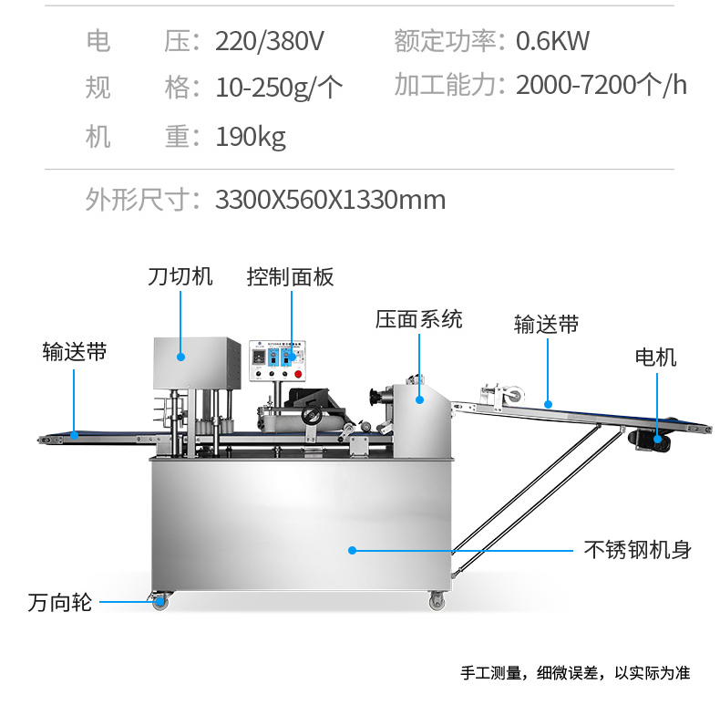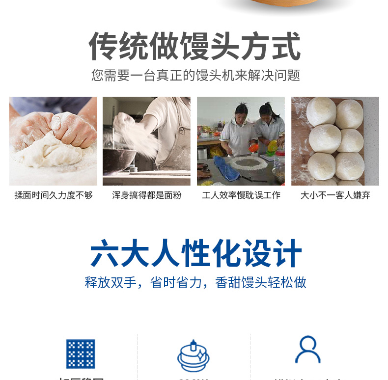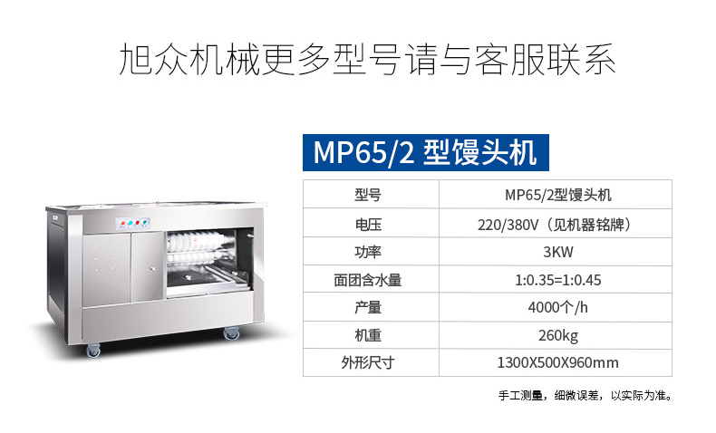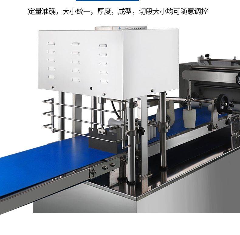 ?自動化程度高,定量準確,制品大小統(tǒng)一,饅頭面帶厚度、成型、切段大小均可隨意調(diào)控;