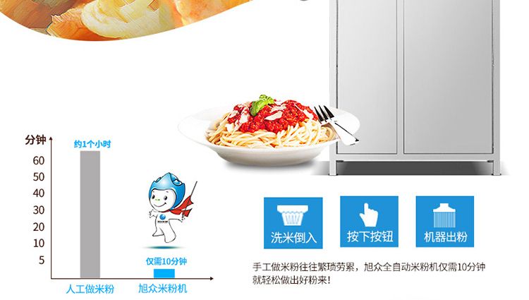 一人一機便可完成生產(chǎn)過程,高效節(jié)能,用電少,占地小。是中西餐廳、早餐店、學校、部隊、醫(yī)院、企業(yè)單位食堂等不可或缺的配套設施。國內(nèi)提供免費上門培訓指導、安裝、調(diào)試、工藝傳授。