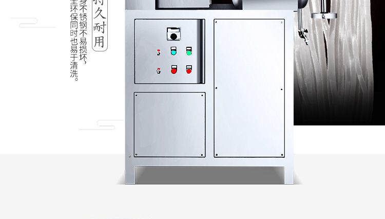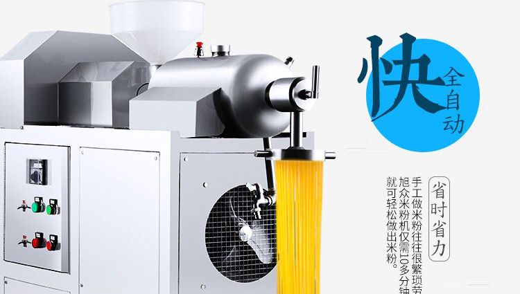 改進(jìn)型米粉、米線專用機(jī),裝有自動溫空裝置,整個生產(chǎn)過程設(shè)備均在恒溫狀態(tài)下運行,自動化程度高,操作簡單,l人即可生產(chǎn)。可生產(chǎn)米粉、米線、桂林米粉、過橋米線、年糕等產(chǎn)品。各種形狀都可生產(chǎn)(圓、扁),加工食品外表光滑,厚薄、寬窄、粗細(xì)均勻可調(diào),筋軟適度,有彈性,口感柔軟、味道純正。