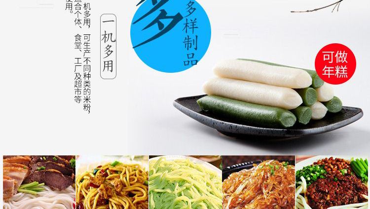 ◆ 米粉機(jī)生產(chǎn)多樣性可生產(chǎn)米粉、米線、粉絲、粉條、年糕、玉米面條、各種雜糧粉絲、各種面條、雜糧面條、彩色面條以及以紅薯、玉米、大豆、蠶豆等制成淀粉為原料的等多種食品而且每種食品厚薄、粗細(xì)等規(guī)格可根據(jù)需要任意調(diào)整。