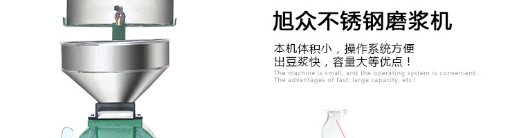 旭眾牌SZ-12/15/20不銹鋼磨漿機(jī)結(jié)構(gòu)合理,造型美觀,操作簡(jiǎn)便。具有體積小、重量輕、噪音低、省力,性能穩(wěn)定、質(zhì)量可靠、容易清洗、移動(dòng)方便等優(yōu)點(diǎn),適用于豆制品廠、飲食服務(wù)業(yè)、食堂、飯店及個(gè)體商戶使用。
