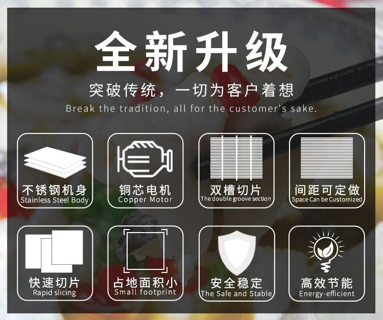 本機采用優(yōu)質(zhì)不銹鋼托魚板,衛(wèi)生干凈,刀片采用進口材料。經(jīng)過特殊處理工藝,鋒利耐用,切片效果好,符合食品衛(wèi)生標(biāo)準。本機驅(qū)動方式簡單,操作便利,安全可靠,刀片容易拆洗,采用固定方式,切片面平整光滑,適合斜切三文魚,魷魚等等魚類或者斜切豬肝牛肚等肉類。適用于肉類加工廠,本產(chǎn)品加工廠,大型餐飲行業(yè)等單位。