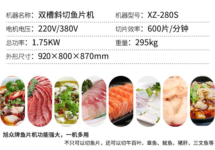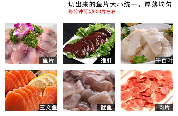 本機外形美觀、操作簡單、效率高、耗電小、清潔保養(yǎng)容易、安全衛(wèi)生、切肉效果好等優(yōu)點,切鮮魚機器其造型美觀、結(jié)構(gòu)緊湊、堅固耐用,切魚片機器價格實惠是賓館、酒家、食堂、肉類加工場等單位所不可缺少的肉類加工機械