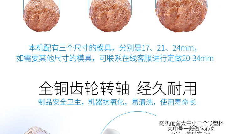 用于制作豬肉丸、魚肉丸、牛肉丸、雞肉丸、貢丸等各種肉丸。