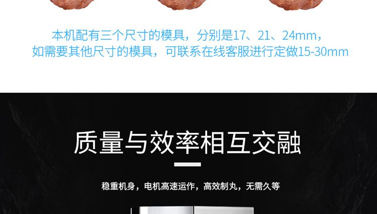 用于制作豬肉丸、魚(yú)肉丸、牛肉丸、雞肉丸、貢丸等各種肉丸。
