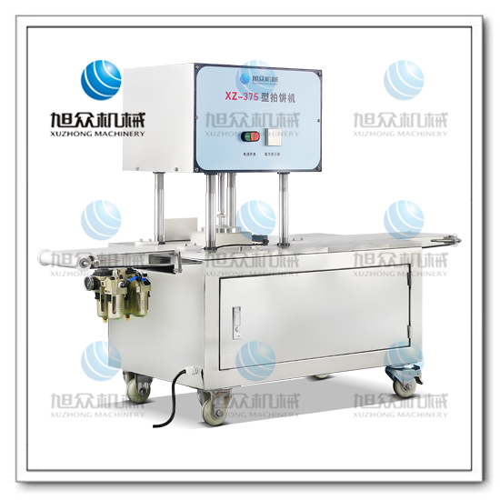 此機(jī)器配合酥餅機(jī)、月餅機(jī)、糍粑機(jī)等機(jī)器使用,作進(jìn)一步拍扁功能。