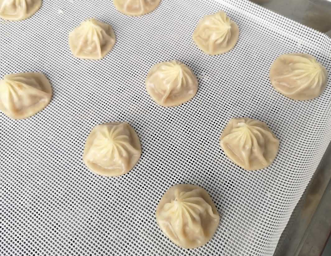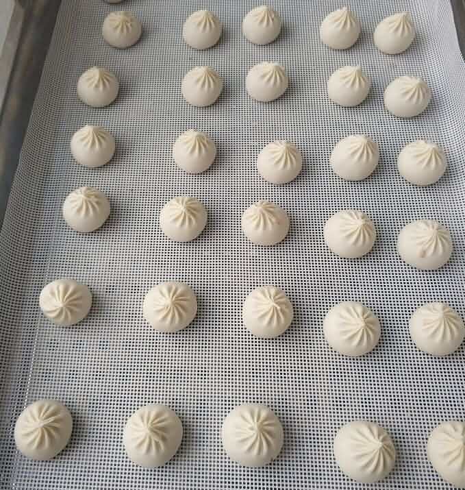 現(xiàn)早上9點26分,上班時間8點30分,客戶早早帶著餡料來廠考察包子機,主要做死皮湯包,而剛剛一盤的湯包蒸制出來,因為是皮肉凍湯包,所以餡料昨天就已經(jīng)備好了,只需要手動或者和面機將面和好就行了,再通過旭眾包子機自動包餡成型一個個包子,在通過蒸柜蒸至10-15分鐘左右就行,效果圖如下: