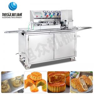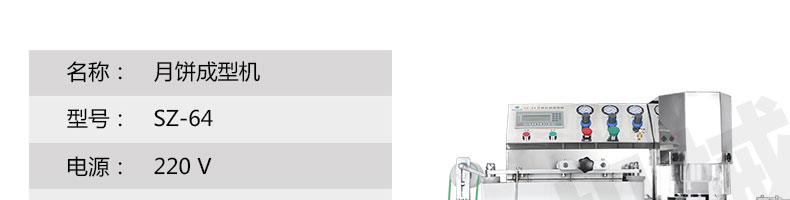 旭眾牌SZ-64型月餅自動成型機是一款多功能的設(shè)備,其具備的功能有:月餅計數(shù)、數(shù)字清零、月餅位置定位、月餅花紋深度調(diào)節(jié)、外模對內(nèi)模提前動作時間調(diào)節(jié)以及成型時輸送帶延時時間調(diào)節(jié)。