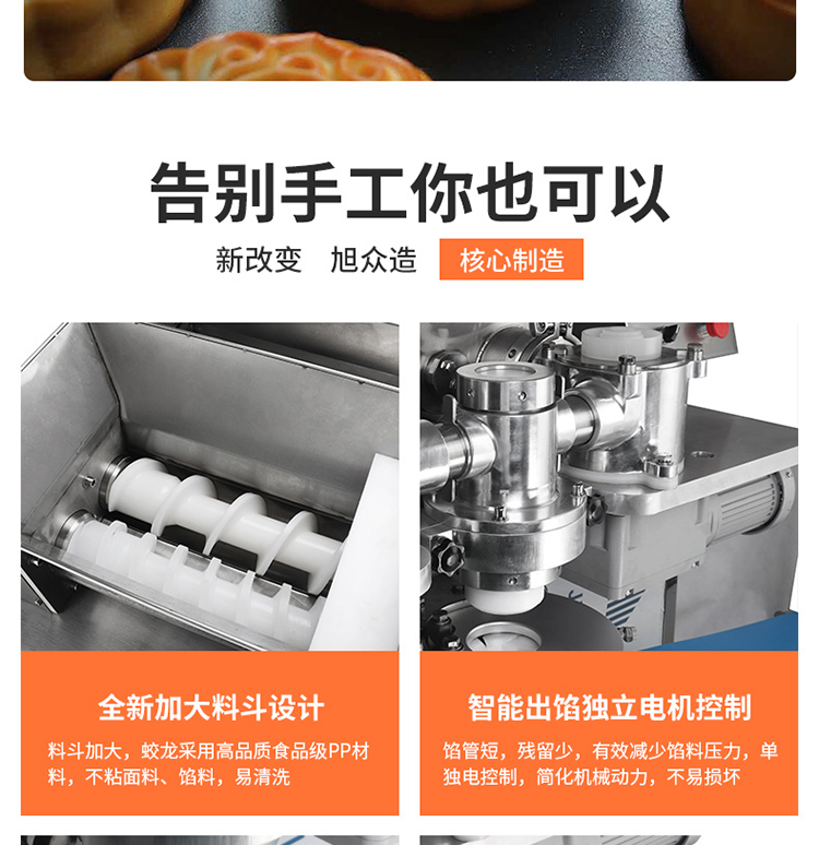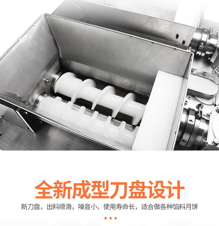 2.餡管更短,管內(nèi)存料少,減小出餡壓力,有效保護餡料顆粒,使餡料更松散、產(chǎn)品重量、皮餡比例更加穩(wěn)定,適用多種餡料;