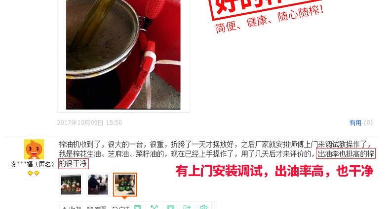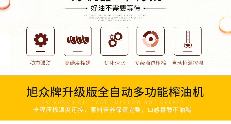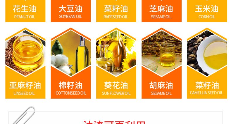 適合壓榨油料 | 芝麻、菜籽、葵花籽、花生、大豆、等多種原料 |
