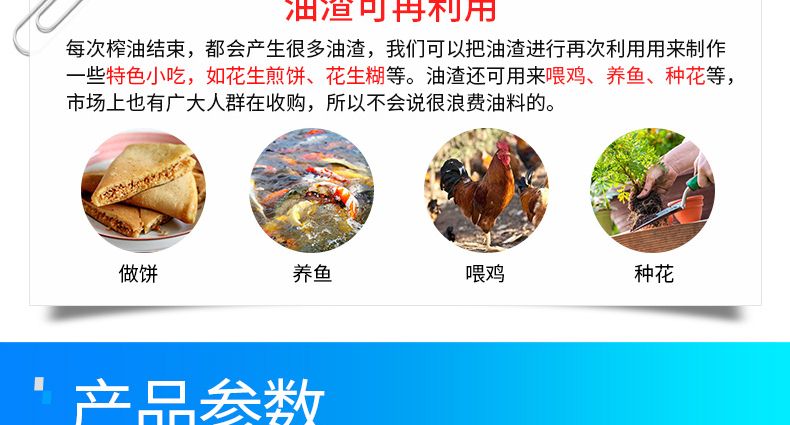 適合壓榨油料 | 芝麻、菜籽、葵花籽、花生、大豆等多種原料 |